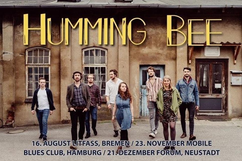Neustadt. „Humming Bee“ ist eine 8-köpfige Band aus Lübeck mit Wurzeln auch in Neustadt. Sie wird am Samstag, dem 21. Dezember im Forum ein Konzert geben. Vielfältig instrumentiert (Gitarre, Kontrabass, Oboe, Saxofon, Blech, Banjo, Drums, Piano) und vielfältig im Stil werden die acht Musiker die Folk-Freunde ebenso zufriedenstellen wie die Freunde des Rock-Pop. „Urban Indie“ und „ländlicher Folk“ nennen sie ihr Programm. Ihr umfangreiches Repertoire enthält viele eigene Kompositionen. Schon mehrfach ist die Band im Forum aufgetreten und hat immer ein heftig applaudierendes Publikum gefunden. So hoffen Dina Lipowitsch, Wiebke Hahn, Patrick Makal, Pay Bandik Nonn, Melf Torge Nonn, Adi Kläs, Kio Krabbenhöft und Moritz Löffler auch diesmal auf begeisterte Zuhörer. Sie sind ab 20 Uhr in der Wieksbergstraße 2-4 zu hören. Der Eintritt an der Abendkasse kostet 10 Euro. Wer Glück hat, findet im Café, im Imbiss oder beim Friseur einen Flyer, auf dem ein freier Eintritt angeboten wird. (red)