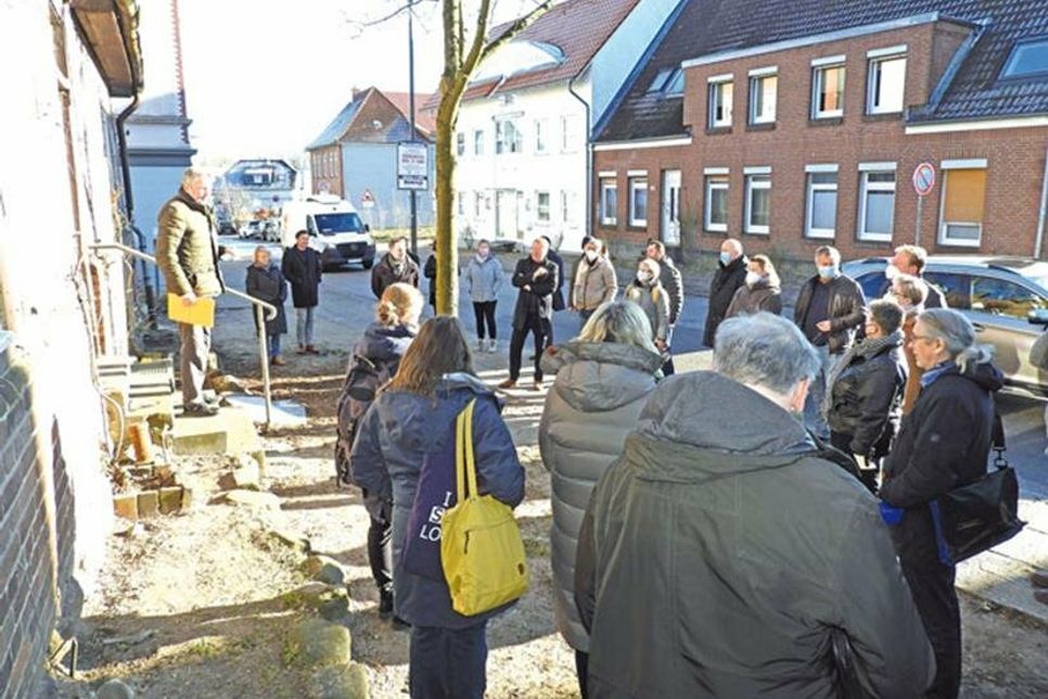 Aktuell werde im Kreis daran gearbeitet, die fehlenden Elemente im Genehmigungs-Bescheid nachzuarbeiten, erläuterte Fachbereichsleiter Nils Hollerbach. Während es dabei nach seiner Schilderung um Formfehler gehen soll, kamen beim Ortstermin fachliche Argumente für einen Erhalt des denkmalgeschützten Hauses zur Sprache. Berthold Köster vom Landesamt für Denkmalpflege hatte eigens einen Hammer dabei und unterstrich anhand einer Klopfprobe seine Einschätzung: „Wenn wir solche Häuser aufgäben, hätten wir nur noch 20 Prozent unserer Baudenkmäler:“ Mit anderen Worten: Obwohl die Stadt Eutin als Eigentümerin über Jahrzehnte kaum etwas für den Erhalt getan habe, sei die Bausubstanz nicht abrisswürdig. Susanna Sunder-Plassmann knüpfte an dieses Ergebnis ihre Frage: „Warum muss ein Abriss sein? Der Schulbau kann davon entkoppelt werden und es könnten alle gewinnen“, so die Vorsitzende des Denkmalrates.