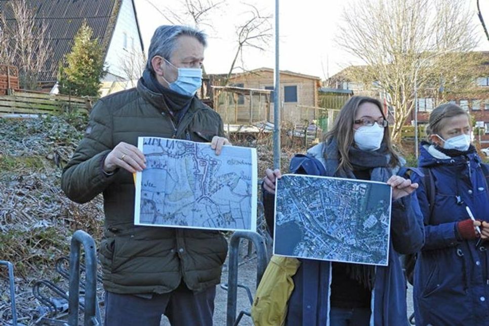 Anhand einer historischen Karte zeigte sie, dass das Gebäudeensemble geschichtliche Bedeutung hat. Seit 2017 denkmalgeschützt, steht es seit 1969 auf der ersten der Liste des Denkmalschutzes. Die Frage, ob es sich um „Ackerbürgerhaus“ handelt, sei bei der Beurteilung nicht ausschlaggebend. Historisch bedeutend sei das Ensemble als Beispiel für den Übergang aus der Stadt zur Feldmark, wie Regine Jepp ausführte. Sie steht hinter der Petition, die eine Reaktion auf die Abrisspläne der Stadt ist, stellvertretend für alle, die sich für den Erhalt des Ensembles einsetzen: „Fällt ein Haus, fällt das gesamte Ensemble“, so ihre Befürchtung.
