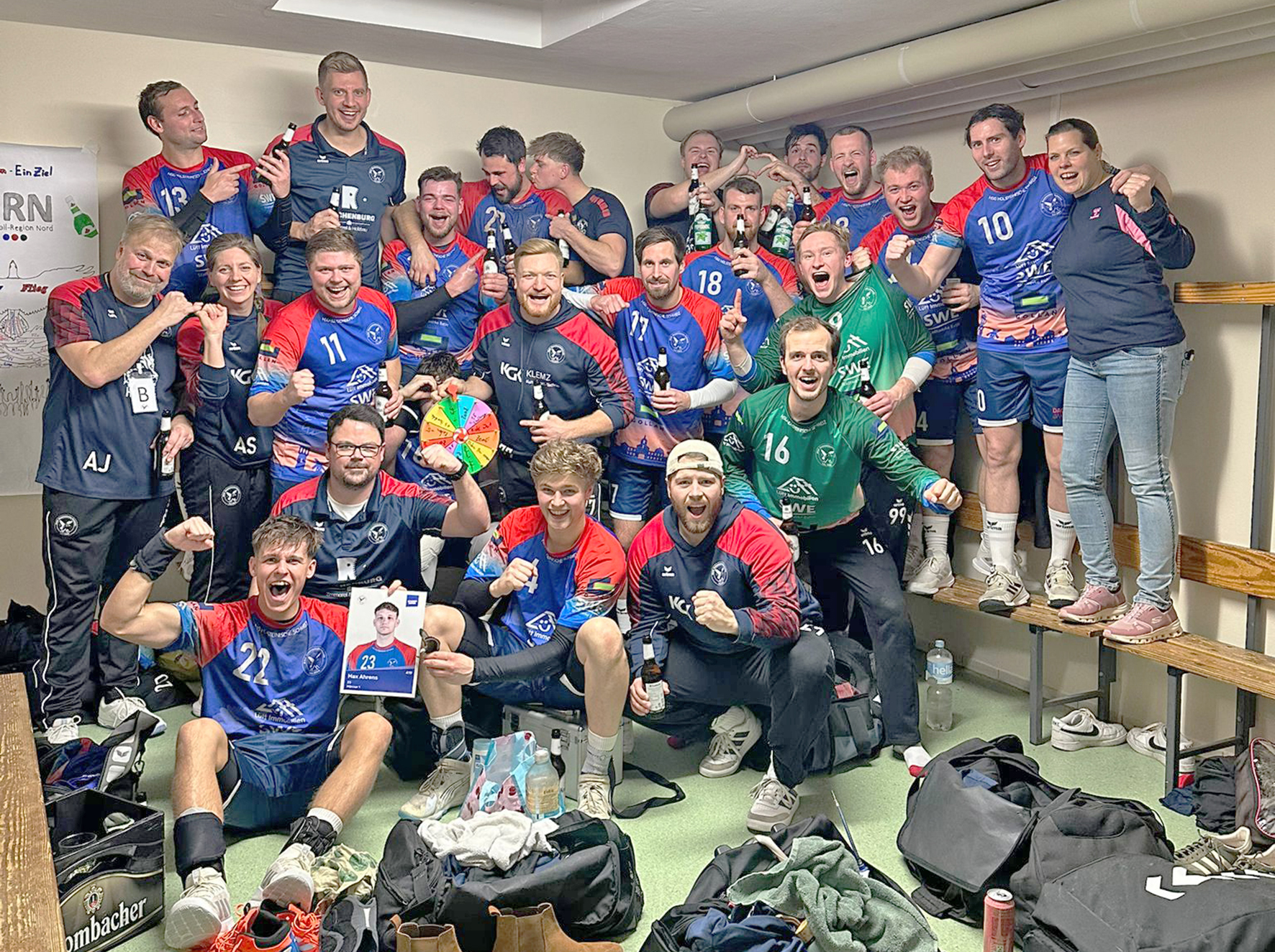 Halbzeit zwei verlief etwas ruhiger. Das hohe Tempo aus der ersten Halbzeit wurde etwas gedrosselt von beiden Teams. Nichtsdestotrotz lief die HSG weiter einige Tempogegenstöße und baute den Vorsprung kontinuierlich noch weiter aus. Das war für Trainer Andreas Juhra das Zeichen, ein paar ungewöhnliche Formation durchzuprobieren und Spielzeiten zu verteilen. Letztlich tat es dem Spiel keinen Abbruch. Die HSG erhöhte bis zum Schluss die Führung auf 40:25. Sehenswert war dabei noch das erstmalige 40. Tor der Saison durch Torhüter Luke Benkte, der über das ganze Feld ins leere Tor traf. Die Tore für die HSG erzielten: Hannes Grunwald (9); Nick Fürst (8); Sebastian Potz (7); Julian Euler, Konstantin von Starck, Florian Brandt, Tamino Stöcker, Benjamin Path, Tizian Grigoleit, Robin Morris (je 2); Luke Benkte, Moritz von Starck (je1).