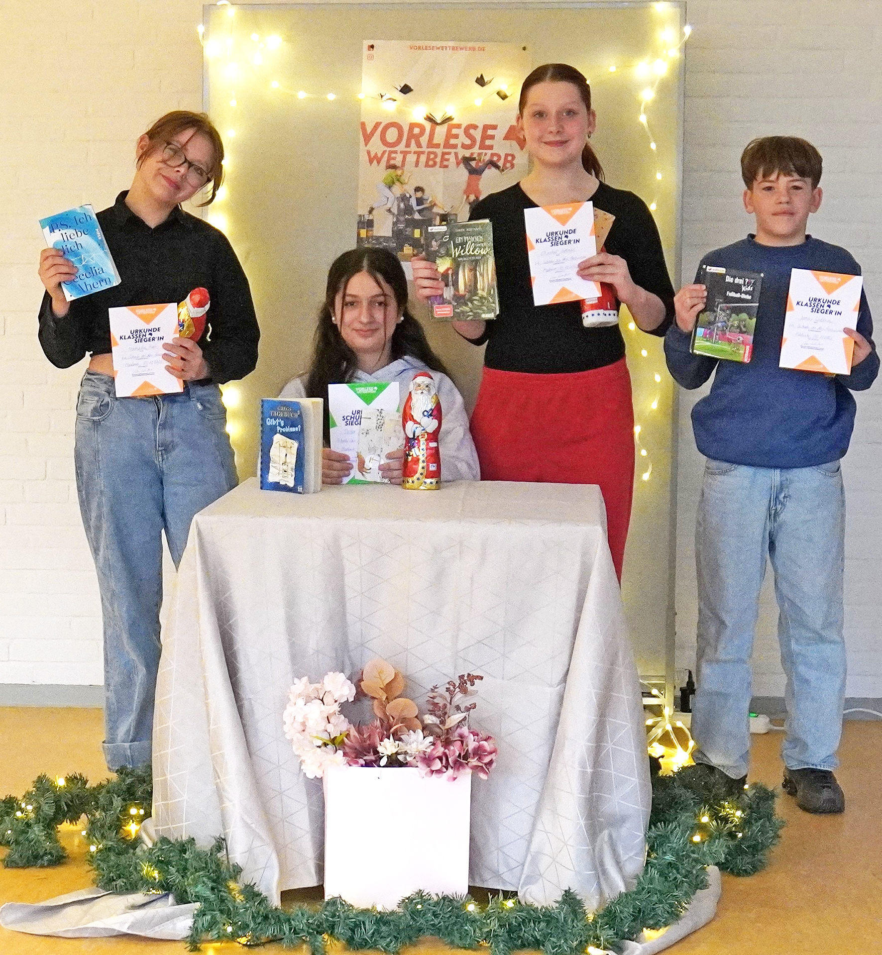 Alle klassen- und schulbesten Vorleserinnen und Vorleser wurden mit einer Urkunde, einem Schokoweihnachtsmann und einem Buchgutschein für die Eutiner Buchhandlung Hoffmann ausgezeichnet. Jährlich nehmen bundesweit rund 600.000 Schü-ler*innen der 6. Klassenstufe am Wettbewerb teil. Er ist einer der größten und traditionsreichsten Schulwettbewerbe Deutschlands und steht unter der Schirmherrschaft des Bundespräsidenten. Nun drückt die Schulgemeinschaft Drita für den Kreisentscheid in Eutin die Daumen.