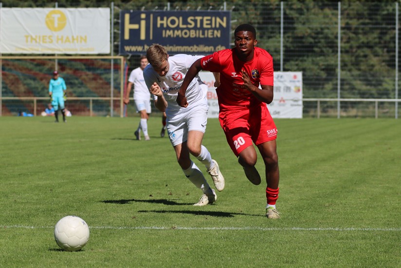 Die Partie begann aus Eutiner Sicht denkbar ungünstig. Bereits nach 24 Sekunden musste der in der Winterpause vom TSV Pansdorf gekommene junge Torwart Mika Popp hinter sich greifen. Trotz des frühen Rückstandes kämpften die Eutiner gegen den Favoriten und erspielten sich auch eigene gute Torchancen. Die besten Gelegenheiten besaßen Noah Odiase mit einem Lattentreffer sowie Tim Schüler, der am Kieler Torwart knapp scheiterte. Allerdings war Kilia die spielbestimmende Mannschaft mit der Mehrzahl an Chancen. So war das 2:0 in der 43. Minute keineswegs unverdient. „Aber das Tor fiel natürlich zu einem denkbar ungünstigen Zeitpunkt“, haderte der Eutiner Trainer Dennis Jaacks.