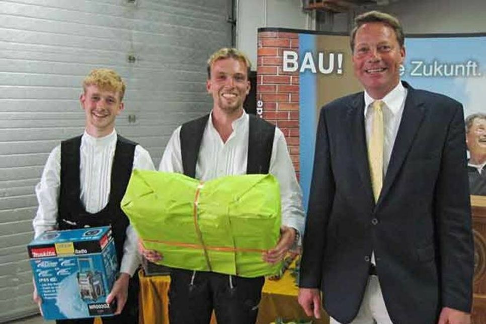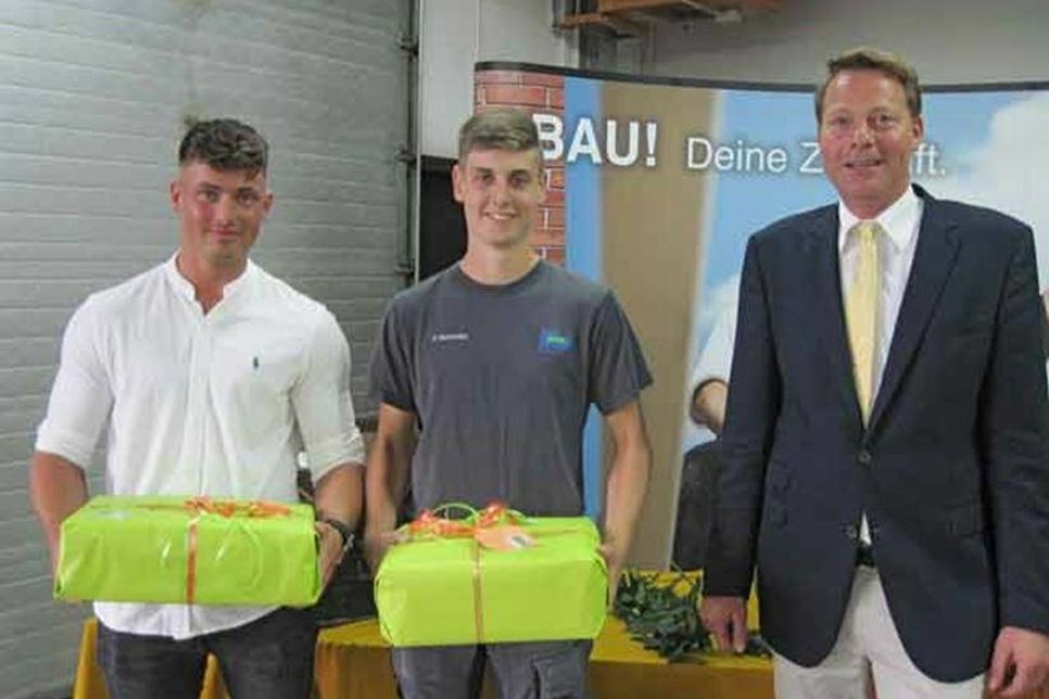 Als Innungsbeste im Ausbildungsberuf Maurer wurde Fabian Kommke und Julian Lindner (Ausbildungsbetrieb jeweils Gollan Bau, Schashagen) durch Ralf Hoffmann mit einem wertvollen Präsent ausgezeichnet. Die gleiche Ehre widerfuhr Finn Böckmann (Gollan Bau, Schashagen) sowie Lennard Otto Kesny (Jakubenko & Sick, Bosau), die die besten Abschlussprüfungen dieses Jahres im Ausbildungsberuf des Zimmerers abgelegt hatten.