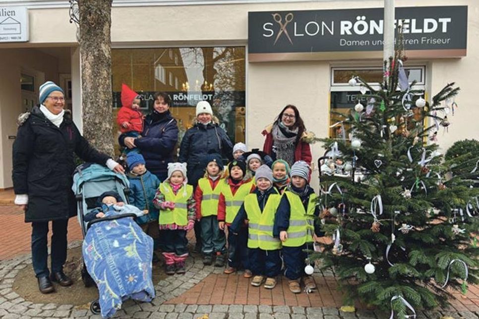So hat die Vorweihnachtszeit für die Sonnenkinder schon in der Woche vor dem ersten Advent angefangen: „Die Kinder waren so fleißig“, strahlt Christine Erdmann, die Leiterin der KiTa, „wir haben zusammen Tännchen aus Fimo gebastelt, Zapfenelche, Korkenengel, Perlenzuckerstangen und Schneemannkugeln, damit die Weihnachtsbäume richtig schön bunt werden.“ Mit dem Baumschmuck wanderten die Lütten dann am Freitag vor dem ersten Adventswochenende in die Bahnhofstraße und schmückten die Weihnachtsbäumchen vor Salon Rönnfeldt und dem neuen SeifenDealer-Laden auf der Ecke Kampstraße. Pünktlich zum ersten Advent eine wunderbar weihnachtliche Zierde für die Malenter Einkaufsstraße.