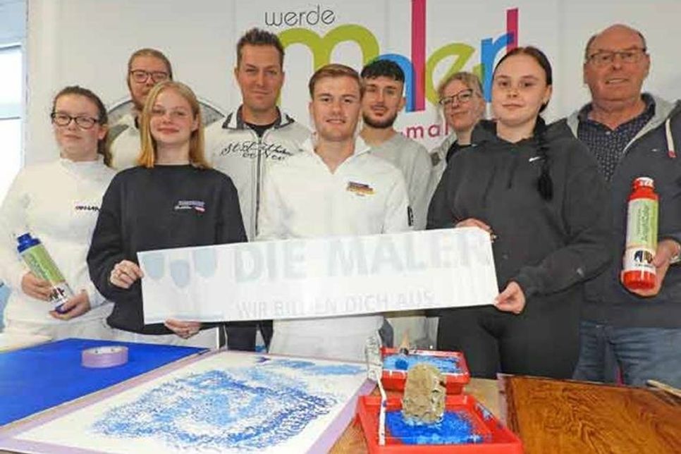 Eutin (aj). Ein Summen wie im Bienenstock herrschte in Fluren und Klassenräumen. Und auch was die Effektivität anbelangt, ist der Vergleich stimmig: 48 Stände, 104 Berufe, 33 Studiengänge - das volle Ausbildungspaket erwartete die Schüler*innen, die am Mittwoch letzter Woche den Weg in die Berufliche Schule des Kreises am Standort Eutin fanden. Statt trockener Theorie und ein paar Infozetteln gab es lebendige Schilderungen aus erster Hand, greifbare Perspektiven und echte Einblicke in den jeweiligen Berufsalltag. Dass die teilnehmenden Betriebe Einiges auffahren, um sich zu präsentieren, hat einen ernsten Hintergrund: In vielen Firmen fehlen die Auszubildenden und damit die Fachkräfte, die die Zukunft sichern: „Der Bedarf wird größer“, sagte Markus Dusch, Vorsitzender der Geschäftsführung der Agentur für Arbeit Lübeck. Eine Schlüsselstelle sieht er in der gezielten Information: „Mit dieser Messe möchten wir Schüler*innen ihre beruflichen Perspektiven vor der Haustür aufzeigen. Oft konzentrieren sie sich nur auf einen Wunschberuf und kennen die Alternativen nicht. Vielen Jugendlichen ist auch nicht bekannt, dass ein höherer Schulabschluss bereits durch den Abschluss einer Ausbildung erreicht werden kann oder dass man Studium und Lehre verbinden kann“, so Dusch. Aufklärung ist auch der Motor, der die Koordinator*innen der Messer in Eutin um Bereichsleiter Thomas Vetter antreibt: „Bei uns an der Schule lernen 1000 Schülerinnen und Schüler. Das sind also 1000 junge Menschen auf der Suche nach einem Beruf“, erklärte der Pädagoge, der am Beispiel junger Migrant*innen und alleinerziehender Mütter die vielfältigen Möglichkeiten für eine Ausbildung erörterte. Ein wesentlicher Punkt sei die Information der Eltern, die noch häufig eher in Richtung eines Studiums orientiert seien. Eine Beobachtung, die man in Beruflicher Schule und Arbeitsagentur gleichermaßen machen kann. Aktuell stehen einem Jugendlichen 1,8 Ausbildungsstellen zur Verfügung. Entsprechend engagiert fiel der Appell von Thomas Vetter aus: „Es werden nicht alle glücklich im Studium. Mit einer Ausbildung kann man Karriere machen, Geld verdienen und ein gesunder und glücklicher Mensch werden“, unterstrich er. Was das konkret bedeutet, erleben die jungen Auszubildenden im ersten Jahr im Maler- und Lackierhandwerk Tag für Tag: „Es macht einfach Spaß und man kann schon nach kurzer Zeit selbst Arbeiten übernehmen“, sagte Klara Deuster. Für Maximilian Reddemann stand früh fest, dass er in die Fußstapfen seines Vaters treten will, der einen Malerbetrieb hat: „Der Beruf ist vielseitig und kreativ und beinhaltet weit mehr, als nur Wände zu streichen“, meinte er. Sein Freund Leon Staniec denkt ähnlich: „Der Beruf hat Zukunft. Und man kann sich spezialisieren mit seinen Fähigkeiten“, pflichtete er bei. Neun Köpfe zählt die Malerklasse. Dafür, dass es künftig noch mehr werden, waren die jungen Azubis am Start, leisteten mit guten Argumenten und mit Schwamm, Pinsel und Farbe Überzeugungsarbeit aus erster Hand. Weil auch künftig wir alle erledigt wissen wollen, was zu tun ist. Und weil das ohne Ausbildung und ausgebildete Fachkräfte einfach nicht läuft.