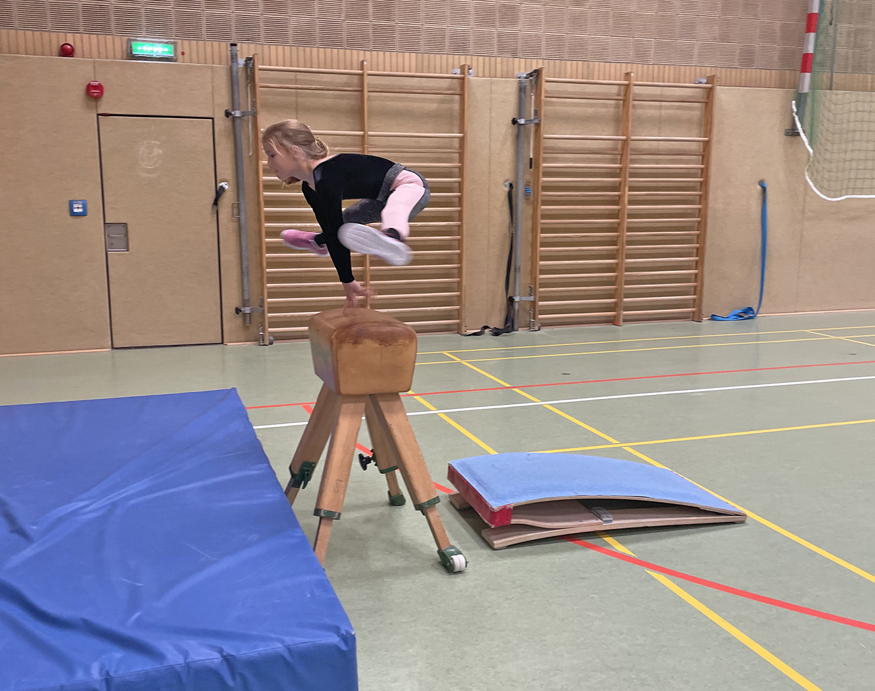 Auch die Grundschüler*innen ließen die Kampfrichter aus den Klassen neun und zehn staunen. Lotta sprang mit Leichtigkeit über den Bock und errang knapp vor Toni, die eine exzellente Standwaage auf der Bank präsentierte, den ersten Platz in der Wertung der Drittklässlerinnen. Ebba erkämpfte sich Platz drei.