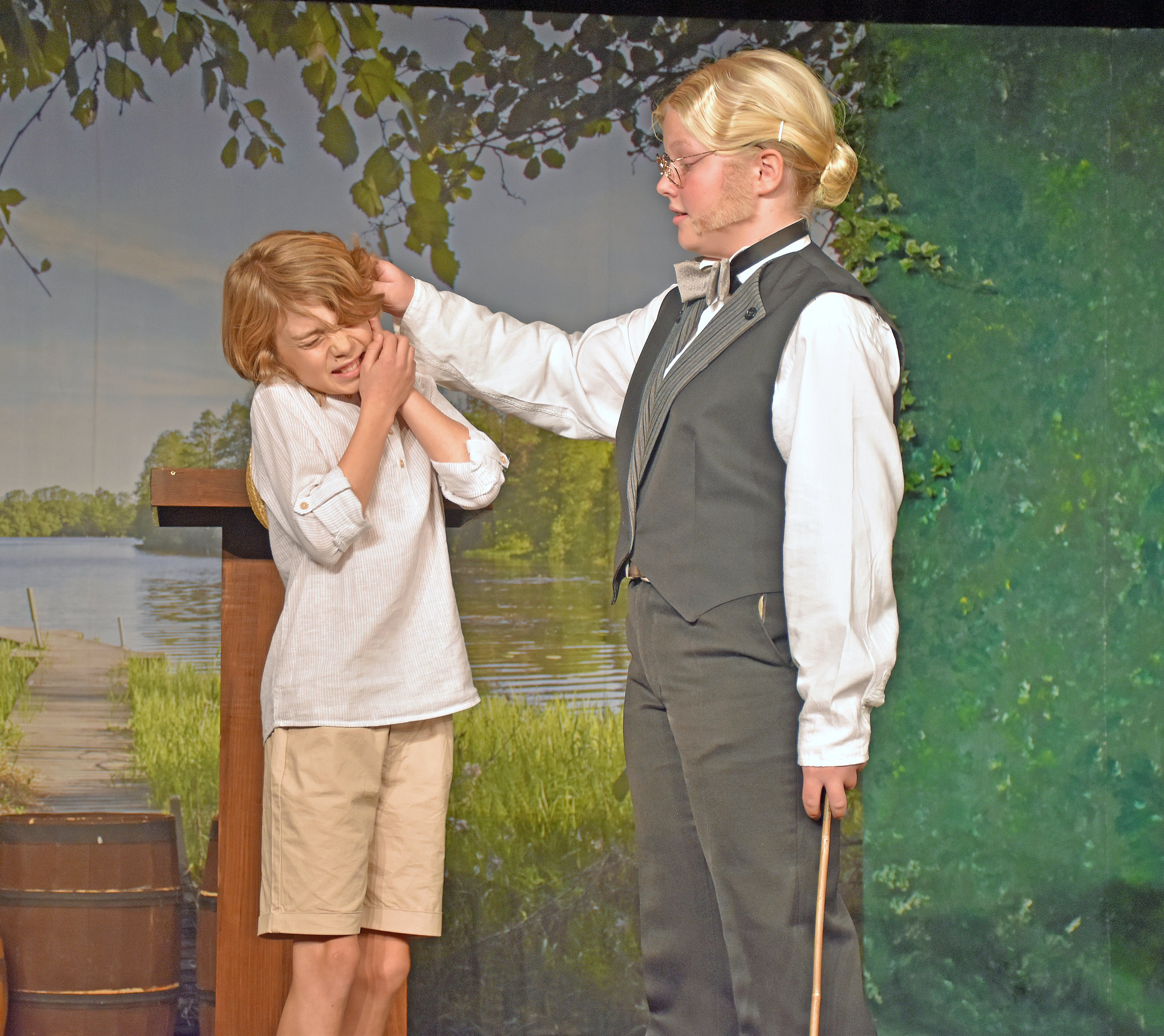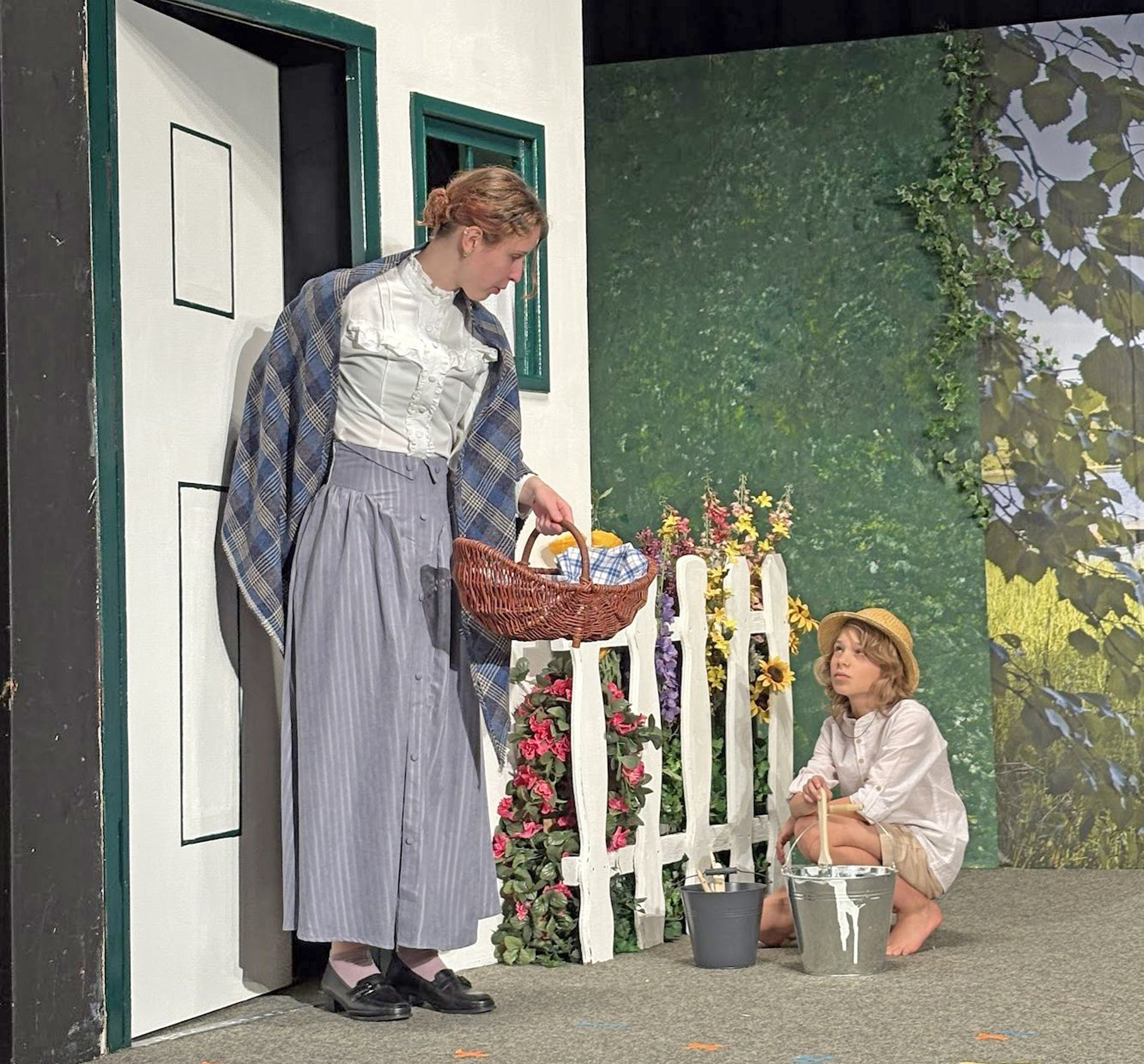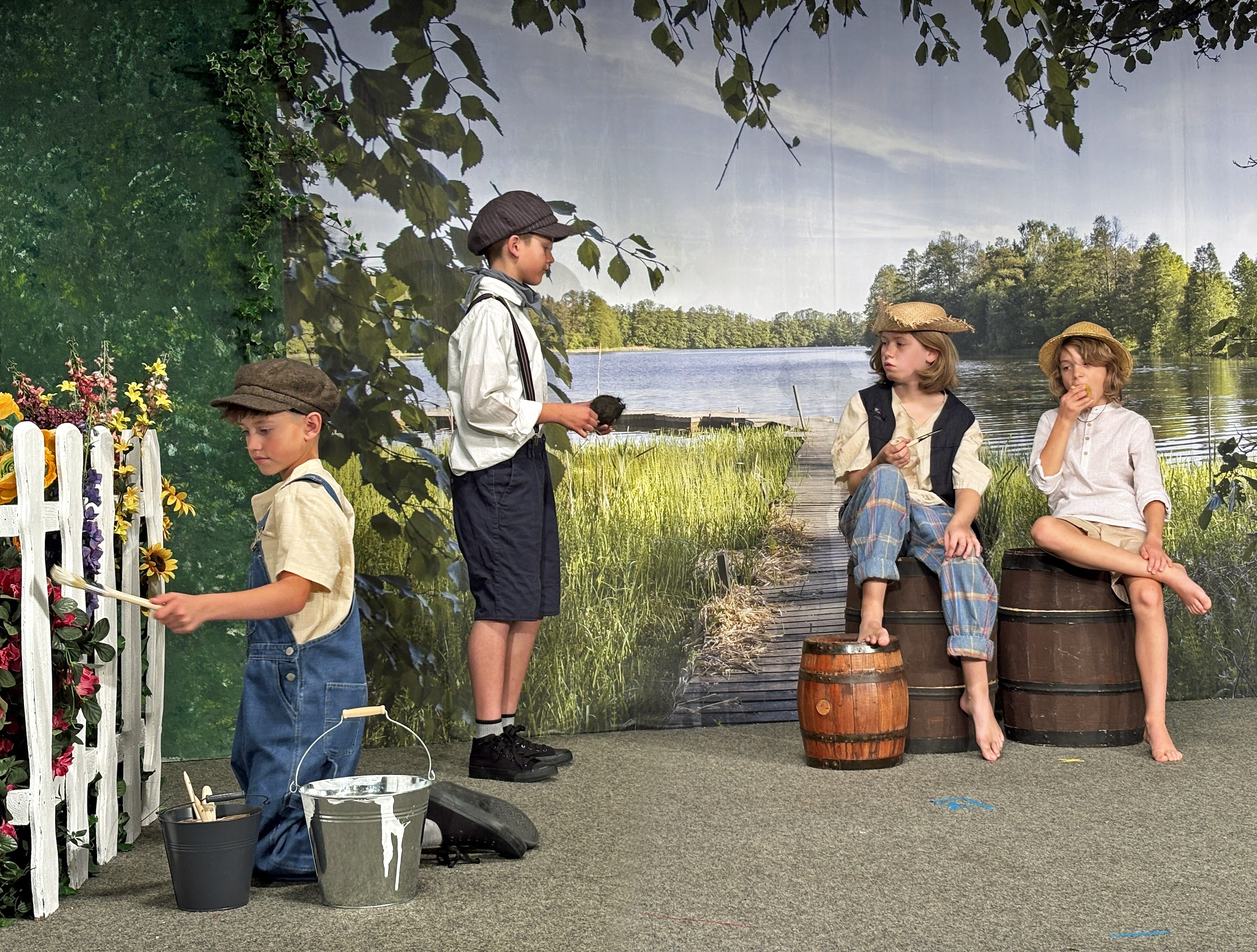 „Wir haben bereits vor den Sommerferien den Text gemeinsam gelesen und dann nach den Ferien damit begonnen, immer montags Szene für Szene zu proben. So hat sich das Stück langsam geformt“, berichtet Silke Bock. Viele Motive werden kleinen und großen Zuschauern sicher vertraut vorkommen – wenn Tom (gespielt von Piet Schuppe, der fast in jeder Szene auf der Bühne steht) seine Tante Polly (Finnja Rokitte) mit seinen Streichen zur Verzweiflung bringt oder wenn er seine Arbeit an Schulkameraden überträgt: Tom preist das Streichen des Zauns als ein so großes Vergnügen an, dass ihm die Freunde sogar noch etwas dafür geben, um den Pinsel schwingen zu dürfen. Und dann ist da noch Kumpel Huckleberry Finn (Emma Beckmann), mit dem Tom auf dem Friedhof ein schauerliches Verbrechen beobachtet – das verspricht einen spannenden Showdown … Auf der Bühne stehen außerdem Kalle Stöckel, Smilla Paulsen, Celine Koscielski, Alina-Sophie Reese, Lina Rotkitte, Lucy Blunck, Annabell Leydecker, Johanna Rakel, Justus und Klaas Weller sowie Thea Sander.