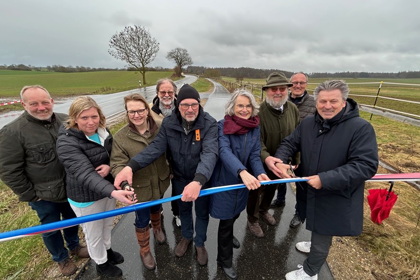 Trotz strömenden Regens ließen es sich daher viele Bürgerinnen und Bürger am vergangenen Freitag nicht nehmen ihren neuen Radweg zu begutachten. Neben Vertreterinnen und Vertretern der ausführenden Planungs- und Bauunternehmen erschienen auch die Staatssekretärin im schleswig-holsteinischen Verkehrsministerium Susanne Henckel, die Bundestagsabgeordnete Melanie Bernstein, die Landtagsabgeordnete Wiebke Zweig, Glasaus Bürgermeister Thomas Gerber sowie Ahrensböks Bürgermeister Andreas Zimmermann, um auch seitens der Politik die neue Verbindung zu eröffnen. Seit Oktober letzten Jahres ist die Strecke bereits für die Öffentlichkeit freigegeben, vier Monate vor der geplanten Fertigstellung. Seitdem wird der Weg von vielen Radfahrerinnen und Radfahrern, aber auch Fußgängerinnen und Fußgängern genutzt. Das Ende eines seit den 80er-Jahren geplanten Projektes.