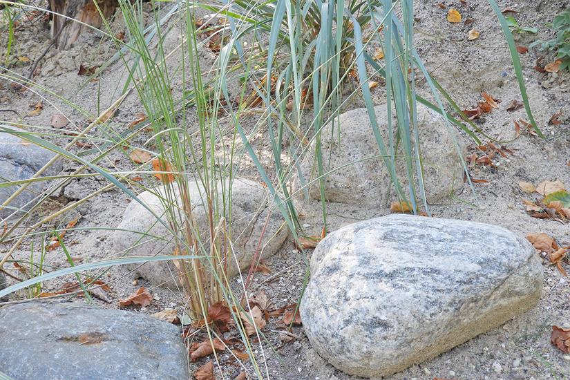 In Sichtweite der Kapelle an einem der Hauptwege gelegen, verströmt die Fläche maritimes Flair. „Zur Erinnerung an die auf See Bestatteten“ steht auf einem schlichten Schild geschrieben. Auf Seesand wachsen Sanddorn, Syltrose, Strandroggen und -hafer, Kopfweiden treiben aus. Dazwischen liegen im Sand gut verteilt etwa 50 Natursteine: „Man sucht sich einen Stein aus, der dann vom Steinmetzbetrieb Stumpf mit einer Plakette versehen wird, in die der Name und auf Wunsch Geburts- und Sterbedatum eingraviert wurden“, erläutert Wiedemann. 250 Euro sind für diesen Service zu zahlen. Der Gedenkstein findet dann einen Platz auf dem Feld: „Wer möchte, kann hier auch eine Vase mit Blumen abstellen“, sagt er. Täglich kommen Menschen auf den Friedhof, besuchen Gräber, halten Zwiesprache mit den Verstorbenen oder sitzen einfach still auf einer der Bänke: „Das ist für viele sehr wichtig“, weiß Wiedemann. Aus diesem Grund hat er die Idee aufgegriffen, auch für jene einen Platz einzurichten, deren Angehörige eine Bestattung auf See gewählt haben. Gern zeigt er Interessierten das Feld und gibt Auskunft zum neuen Angebot. Kontakt kann man unter Telefon 04521-3179 oder per E-Mail an friedhof.eutin@kk-oh.de aufnehmen.