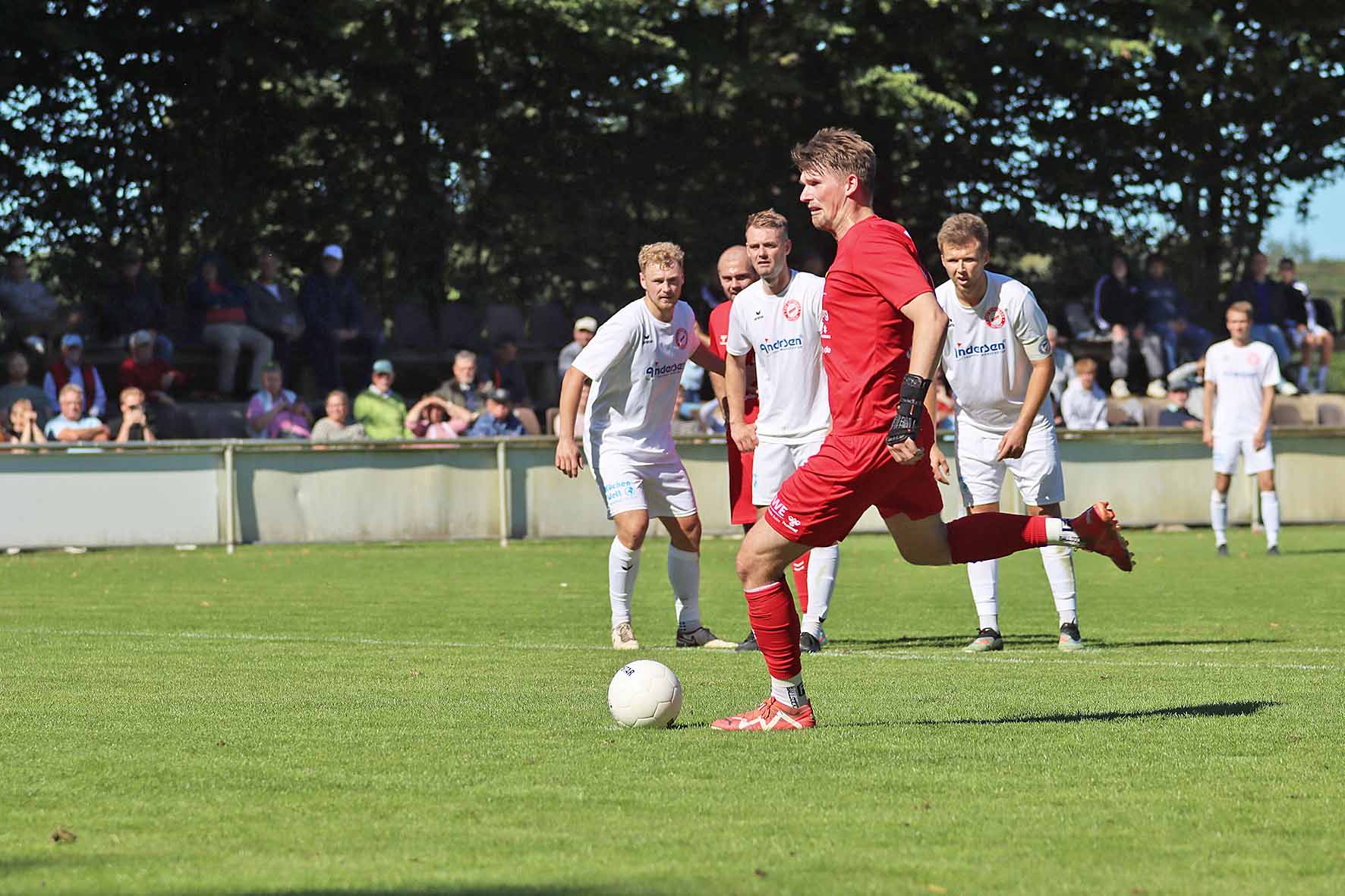 Die Eutiner kämpften weiter und überstanden auch eine 15-minütige Lübecker Drangphase schadlos. „Da haben wir sehr konzentriert agiert und gut verteidigt“, so Jaacks nach Spielschluss. Beinahe wäre den Gästen sogar kurz vor dem Pausenpfiff der Führungstreffer gelungen, als Tom-Luca Weist einen direkten Freistoß nur wenige Zentimeter über den Querbalken setzte.