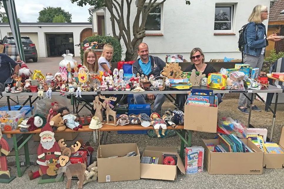 Zwischen 10 und 16 Uhr wird auf rund 800 Metern alles verkauft, „was der Keller so hergibt. Nur Weihnachtssachen laufen nicht so gut“, verrät Christian aus Süsel. Zusammen mit Nicole und den beiden Mädchen Lea und Theresa ist er schon zum zweiten Mal mit einem Stand beim Straßenfest dabei. „Am besten gehen Bücher, CDs und Spielsachen“, resümiert Nicole.