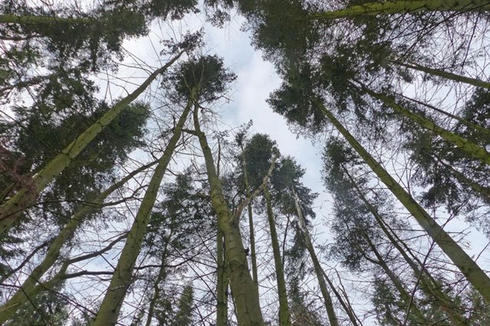 Einst gehörte das Wäldchen zusammen mit der Alten Försterei den Landesforsten – als die Försterei aufgelöst wurde, hatte man das Waldstück der Gemeinde zugeschlagen, allerdings ohne Pflegehinweise zu geben, so sei das Wäldchen über die Jahre verwahrlost, Stürme und Borkenkäfer haben ihr Übriges an den Küstentannen, Fichten und Douglasien getan. Umgefallene, entwurzelte, abgeknickte Bäume prägen das Bild.