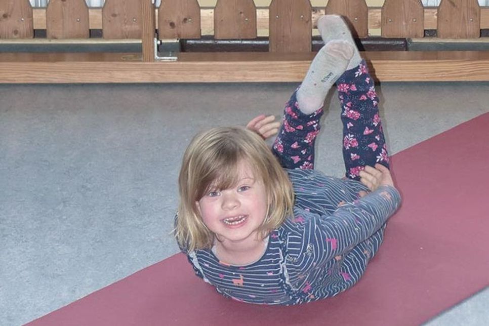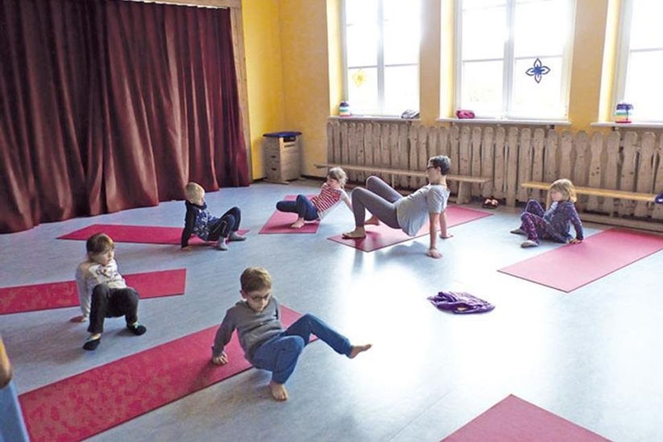 Benz (ed). Mittwoch ist im Kindergarten Alte Schule Benz Yoga-Tag – in der Turnhalle liegen Yogamatten, darauf Amelie, Nele, Chantal, Lukas, Alexa, Felicitas, Ben und Lynn, die Großen der familiären kleinen KiTa, aber nicht lang, denn los gehts mit dem Zauberwort. „Aber was ist beim Yoga am wichtigsten?“ fragt Petra Soltau, ausgebildete Yoga-Lehrerin für Kinder und für Erwachsene, die Lütten, mit denen sie einmal in der Woche rund eine dreiviertel Stunde Kundalini-Yoga macht. „Durch die Nase einatmen“, rufen die Kinder. „Genau, dann gaaaanz dick werden und beim Ausatmen wieder dünn.“ Dann kommt das Zauberwort, ewig lang und sehr kompliziert, doch den kleinen Yogi geht das Omnamogodefunamo… ganz leicht von den Lippen – dann klopfen sie sich eine Minute lang auf den Brustkorb, dazu das Mantra: Ich bin gesund, mir geht es gut!“ und die Thymusdrüse ist wach und hält fit, Körper und Geist, schmunzelt Petra Soltau. „Das kann man zwischendurch ruhig mal machen, das tut jedem gut.“ Dann gehts ans Aufwärm-Yoga: Begleitet von den passenden Yogaübungen schallt es „Guten Morgen Sonne, guten Morgen Erde, wo ist der Mond? Hinter dem Haus, wo die Katze mit der Kobra spielt. Und wenn hinter dem Haus der Mond untergeht, kann am Horizont die Sonne riesengroß aufgehen.“ Das ein paarmal hintereinander und dann kommt das eigentliche Yoga – dabei verpackt Petra Soltau spielerisch Entspannung und Bewegung in eine Geschichte, erklärt dabei, welche Übung für welche Muskeln gut sind. Deswegen finden die Kinder die Frage, wieso sie Yoga machen, auch total komisch, denn ganz die Antwort ist doch logisch: „Damit wir gesund bleiben!“ sagt Chantal und verbiegt sich ganz cool zu einer Krabbe. Für den Rücken ist „Katze und Kuh“ total gut, gegen Kopfschmerzen kann die Kerze helfen – „und es gibt sogar eine Übung gegen Halsschmerzen“, wissen die Kinder, reißen den Mund auf, strecken die Zunge raus und brüllen laut. „Das ist der Löwe“, lacht Petra Soltau. „Die Hausapotheke des Yoga eben.“