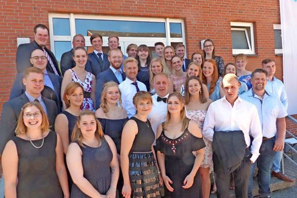 Fachwissen um die Technik, aber vor allem auch um das Produkt Milch seien es, die sie erworben hätten, ergänzt Peter Levsen Johannsen, der Geschäftsführer der Landwirtschaftskammer, „es ist ein Riesenstrauß, den Sie können.“ Und ein krisensicherer Beruf, den sie erlernt hätten – denn der Milchmarkt sei in Bewegung. Überall werden aufgestockt und erfolgreich weiterentwickelt. Dazu bedürfe es solch qualifizierten Personals, das sich fachlich aber immer weiterbilde, um die eigene wie auch die Zukunft der Betriebe zu sichern – und das trotz aller Digitalisierung und Veränderung: „Fachkräfte wie Sie, gut ausgebildet und motiviert, werden immer gebraucht, um noch schonender, effizienter und weniger belastet zu verarbeiten.“ 800 Milchtechnologen und 150 milchwirtschaftliche Laboranten würden derzeit bundesweit gesucht, bringt Holger Lüers, der Vorsitzende des Verbands der Milchwirtschaftler, es auf den Punkt. „Wir brauchen Fachleute an vielen Stellen. Fachleute wie Sie mit einer krisensicheren, hochqualifizierten und hochangesehenen Ausbildung.“