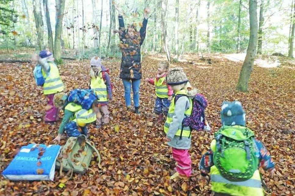 Schönwalde/Sarau (t). Es ist ein wunderschöner Herbsttag, die bunten Blätter an den Bäumen leuchten in der Morgensonne – und Punkt acht Uhr steht der große rote Bus namens „Sausewind“ vor dem Kindergartengelände, um die Kinder der Sarauer KiTa Schatzkiste direkt zum Bungsberg zu fahren. Dort angekommen, wird erstmal ordentlich gefrühstückt, denn der Tag wird eine ganze Menge Abenteuer für die Lütten bereithalten – kaum sind die Brotdosen wieder verstaut, starten die großen Schatzkisten-Kinder mit einer Waldpädagogin direkt ins Abenteuer „Biberwerkstatt“.