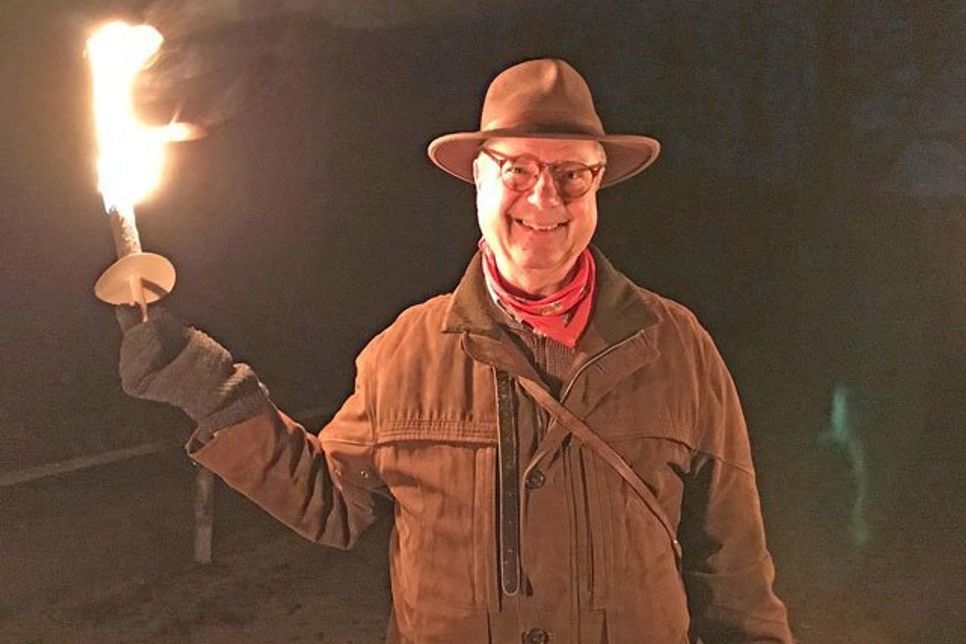 Geführt wird die Wanderung von Harald Düsterhoff. Der Berliner kam 1985 nach Malente und hat, wie er selbst sagt, „ein Faible für Geschichte“. Als zweiter Vorsitzender des Heimat- und Verschönerungsvereins Malente-Gremsmühlen e.V. liegt ihm seine Stadt – und ihre Geschichte – sehr am Herzen. Zuweilen hält Harald Düsterhoff auch Vorträge über seine Wahlheimat im Kursaal oder in der Thomsen-Karte am Markt in Malente. Los geht die Fackelwanderung an der Tourist-Information Malente in der Bahnhofstraße 3. „Mit der Eisenbahnstrecke Lübeck – Kiel erlebte Malente seine Blütezeit“, beginnt Harald Düsterhoff die Tour. „Zahlreiche Touristen, davon viele aus Hamburg, besuchten Malente und machten hier Urlaub.“