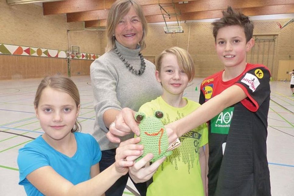 Zweimal im Jahr treffen sich alle Handballkinder und ihre Familien zu einem Kuddel-Muddel-Turnier mit allem drumherum, dann feiern alle zusammen, spielen Handball und haben eine Menge Spaß. „Das verbinden wir immer mit einer Aktion, bei der wir dann Geld sammeln, um es jemandem zu übergeben, der es braucht“, sagt Petra Stock, „für das soziale Miteinander nach außen. An Weihnachten war es eine Weihnachtsbaumversteigerung, bei der wir 34 Euro zusammenbekommen haben. Die hat ein Vater auf 50 Euro aufgestockt, die wir gern einem lokalen Zweck zukommen lassen wollten, am liebsten etwas mit Kindern.“ Und da sei ihnen natürlich als Erstes der Kinderschutzbund eingefallen mit seinen vielen Projekten, Unterstützungsangeboten und Hilfsmöglichkeiten – und als Heidi Feilke, die Vorsitzende der Eutiner Kinderschutzbundes, von der Aktion hörte, war sie begeistert. „Ich finde es so großartig, wenn Kinder etwas für Kinder tun“, strahlt sie, „wenn sie an andere Kinder denken – das schafft Empathie und das Bewusstsein dafür, dass es Familien gibt, denen es weniger gut geht.“ Solche Familien sind es, die der Kinderschutzbund unterstützt – mit den unterschiedlichsten Angeboten wie der Familienhilfe oder den Eltern-Treffs im Familienzentrum. Mit Rat und Tat steht das Team des Kinderschutzbundes ihnen zur Seite. Und manchmal auch mit finanziellen Mitteln – wie mit der Aktion Trostpflaster, die vor zwei Jahren ins Leben gerufen wurde. Dank Spenden kann mit dieser Aktion in kleinen und größeren Notfällen schnell und unbürokratisch geholfen werden – „wie mit einem Pflaster kleine und größere Wunden besser heilen“, erklärt Heidi Feilke. So wurde einer Familie, der vor Weihnachten die Unterhaltszahlungen ausblieben, finanziell ausgeholfen, damit das Fest nicht ins Wasser fällt – oder die kinderreiche Familie, deren Waschmaschine kaputt ging, ohne dass das Geld für eine neue dagewesen wäre. Ein Zuschuss für die Klassenfahrtkosten oder die Fahrten einer Mama zu ihrem kranken Kind nach Lübeck. „Manchmal sind es nur ein paar Euro, die fehlen“, so Heidi Feilke, „und trotzdem ist es ein echter Notfall.“ Da hilft die Aktion Trostpflaster schnell und gern – auch dank solcher Spenden wie der des HSC Rosenstadt, die Sönke, Paul und Tarja stolz überreichten, samt einem kleinen Frosch, dem Maskottchen der Handballkinder, den die Trainerin Barbara Kleinmann eigens für diesen Anlass gehäkelt hatte. „Das freut mich sehr“, bedankt sich Heidi Feilke bei den Kindern, „das ist eine tolle Aktion. Ihr helft uns damit zu helfen.“
