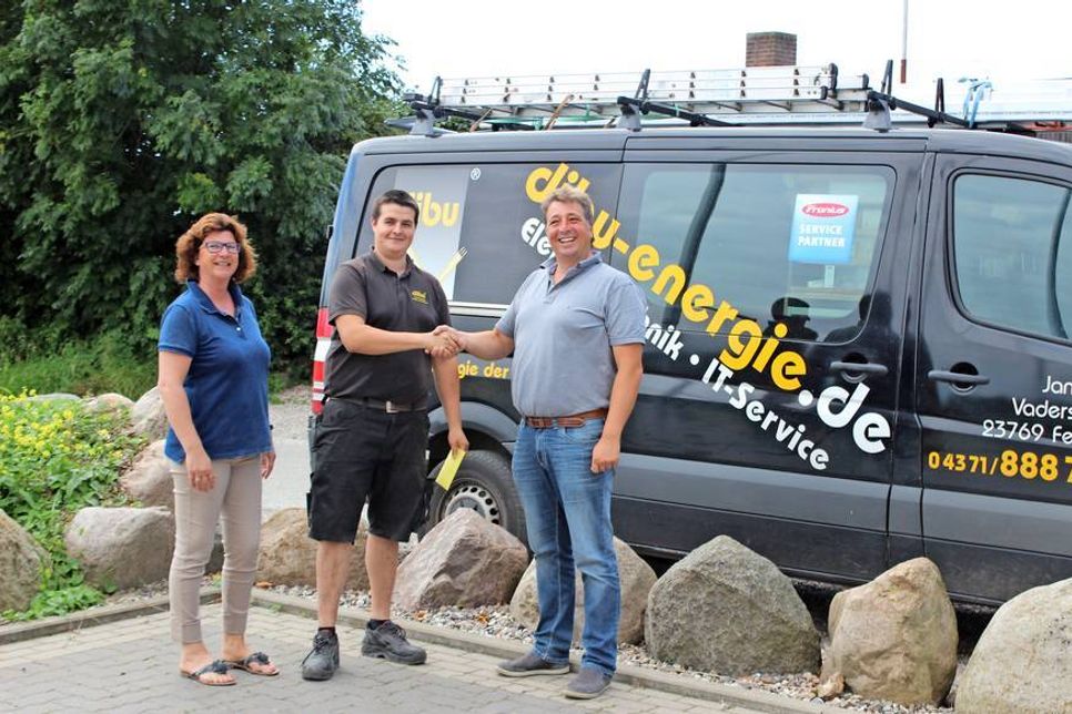 Am 21. August feierte Artjom Dick sein 10 jähriges Jubiläum bei der Firma dibu energie Jan Bruhn in Vadersdorf. Bereits seine Ausbildung zum Elektroinstallateur absolvierte er in dem Vadersdorfer Unternehmen. Mittlerweile unterstützt er mit seiner ganzen Erfahrung nun die Photovoltaik Abteilung. Jan und Sabine Bruhn bedanken sich ganz herzlich für diese tolle Zeit und freuen sich auf weitere spannende Jahre mit Artjom.