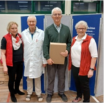 Gemeinsam mit Klaus Marquardt leisteten in Puttgarden am 23. Januar 85 weitere Spenderinnen und Spender mit ihrem Einsatz einen wichtigen Beitrag zur Absicherung der Blutversorgung, unter ihnen waren sechs Erstspenderinnen und Erstspender. Von den Verantwortlichen des DRK erhielt der 71-jährige Klaus Marquardt ein herzliches Dankeschön für seine treuen Spendeeinsätze. Dr. Michael Suchan vom DRK-Blutspendedienst Nord-Ost, Ute Constabel und Gerda Stau vom DRK-Ortsverein Burg/Fehmarn übergaben eine Präsentbox. Außerdem darf sich der Spendejubilar auf eine festliche Ehrung für langjährige DRK-Blutspenderinnen und -spender freuen.