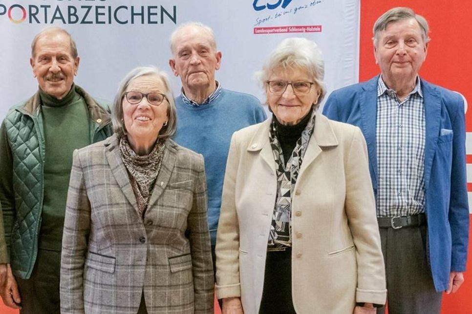 Ostholstein. Am 17.März 2023 ehrte der Landessportverband langjährig erfolgreiche Sportabzeichen-Absolventen/-innen. Dazu wurden 101 Sportler/-innen aus Schleswig-Holstein in das „Haus des Sports“ nach Kiel eingeladen, die mindestens 35 Sportabzeichen erreicht haben. Unter ihnen waren auch zwölf Personen aus Ostholstein, von denen fünf in Kiel zugegen waren. Besonders erwähnenswert ist dabei der 90-jährige Hartwig Mackeprang vom SV Fehmarn, der sich es nicht nehmen ließ, die persönlichen Glückwünsche zu seinem 40.Sportabzeichen entgegenzunehmen. Es ist doch schön zu sehen, dass Menschen in einem so hohen Alter, auch noch so aktiv am Leben teilnehmen können, so Günter Frentz, der Beauftrage für das Sportabzeichen beim Kreissportverband Ostholstein. Weiterhin bekam Dieter Schott vom TSV Malente die Ehrengabe für die 60.Prüfung. Diese große Zahl an Sportabzeichen wird sehr selten in Schleswig-Holstein erreicht. Ilse Siewert vom SV Fehmarn (55.Prüfung), Brigitte Brüchmann vom NTSV Strand 08 und Horst Malchau vom TSV Malente (beide 35.Prüfung) freuten sich ebenfalls ihre Ehrengaben persönlich überreicht zu bekommen. In Abwesenheit wurde Betty Schulz SV Fehmarn (45.Prüfung) ausgezeichnet.