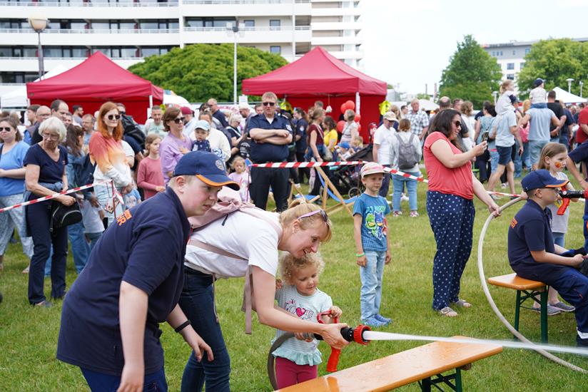 Diese einzigartige Möglichkeit wollten sich die Besucherinnen und Besucher natürlich nicht entgehen lassen, sodass tausende Menschen zum Tag der Feuerwehr vorbeischauten. „Wir sind total begeistert von dem Zuspruch“, freute sich Wehrführer Jacob Revenstorf. In der Organisation stecke schließlich viel Arbeit. Allein 50 Kameradinnen und Kameraden der Grömitzer Feuerwehr waren vor Ort, um allen einen tollen Tag zu bescheren.