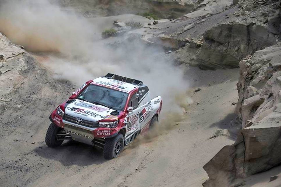 La Paz. Der Sturm vor der Ruhe – mit einer herausragenden Leistung haben Giniel de Villiers und Dirk von Zitzewitz die erste Woche der Rallye Dakar abgeschlossen. Das südafrikanisch-norddeutsche Duo sicherte sich auf dem sechsten Teilstück – eine grenzüberschreitende Wertungsprüfung zwischen Peru und Bolivien – den vierten Tagesrang und festigten damit Rang fünf in der Gesamtwertung. Vor dem einzigen Ruhetag der erbarmungslosen Wüstenrallye führte die Route von Arequipa in Peru nach La Paz in Bolivien und damit erstmals in enorme Höhen. Die Wertungsprüfung wurde im Schnitt auf 4.100 Metern über Normalnull ausgetragen und führte bis auf 4.732 Meter hinauf. Für die V8-Benziner wie im Toyota Hilux „made in South Africa“ bedeutet das mehr Leistungsverlust als für die Diesel-Konkurrenz von Peugeot. Folgerichtig ging der Tageserfolg eher knapp an Carlos Sainz/Lucas Cruz (E/E) vor Stéphane Peterhansel/Jean-Paul Cottret (F/F), die für die Marke mit dem Löwen im Signet antreten. In der Gesamtwertung liegen Peterhansel/Cottret weiter vor Sainz/Cruz.