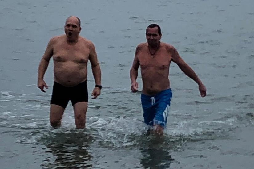 Grömitz. Ein mutiges Leserfoto hat uns Falko Albersmeier aus Grömitz mit folgenden Worten zugeschickt: „Moin liebes reporter-Team. Da es dieses Jahr kein offizielles Anbaden in Grömitz gab, haben wir uns es nicht nehmen lassen, am Neujahrstag in die Ostsee zu springen.“ (red)