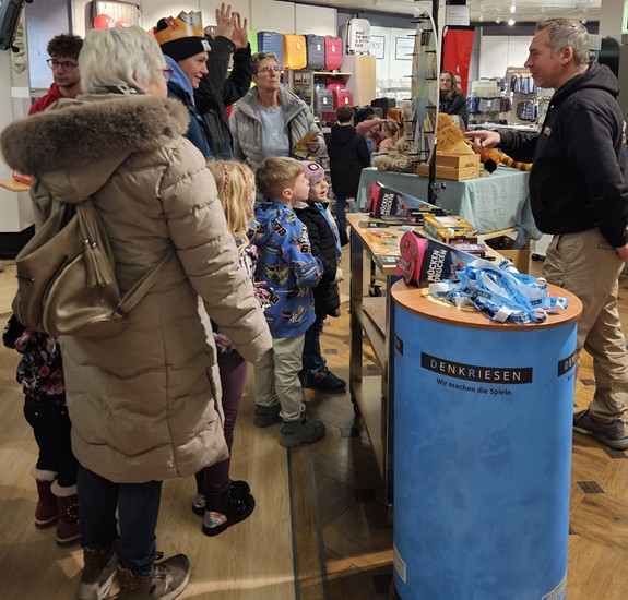Auch abseits der Beratung wartete ein buntes Rahmenprogramm: Die Sparkasse Holstein war mit einem Tresor vor Ort, der geknackt werden konnte, und bot zudem kostenloses Kinderschminken an. Der Zoo Arche Noah aus Grömitz verteilte Freikarten für Kinder, während die Firma Denkriesen mit einem Glücksrad für zusätzliche Spannung sorgte. Bauer Martin aus Bliesdorf steuerte frisches Popcorn bei und Mitarbeitende der Spielwarenabteilung stellten Ravensburger Kinderspiele vor.