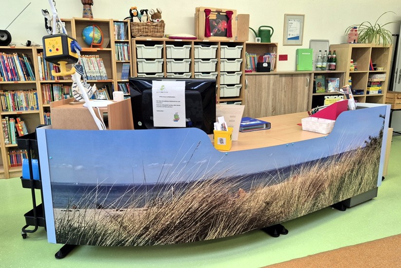 Neustadt in Holstein. In der Schulbibliothek der Grundschule Neustädter Bucht ist ein neues Projekt abgeschlossen: Der Ausleih-Schreibtisch des Bücherhafens hat jetzt eine maßgefertigte Verblendung, die nicht nur gut aussieht, sondern auch Geräte und Kabel schützt. Montiert wurde die stabile Blende aus Alu-Dibond von der Firma Schrift-Art. Möglich wurde das Projekt dank der finanziellen Unterstützung des Lions Club Neustadt, der Bürgerstiftung Ostholstein, Maren Geest und Dirk Soppa. (red)
