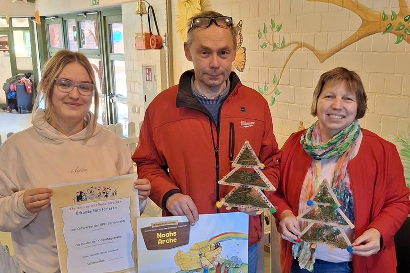 Schönwalde. Bereits zum achten Mal beteiligte sich der SPD-Ortsverein aus Schönwalde am Bundesweiten Vorlesetag. Einer guten Tradition folgend wurde in diesem Jahr wieder die Schönwalder Kindertagesstätte des ev.-luth. KiTa-Werkes Ostholsteins besucht, außerdem besuchten Udo Schirmacher und Angela Hüttmann die Kinder des Waldkindergartens.