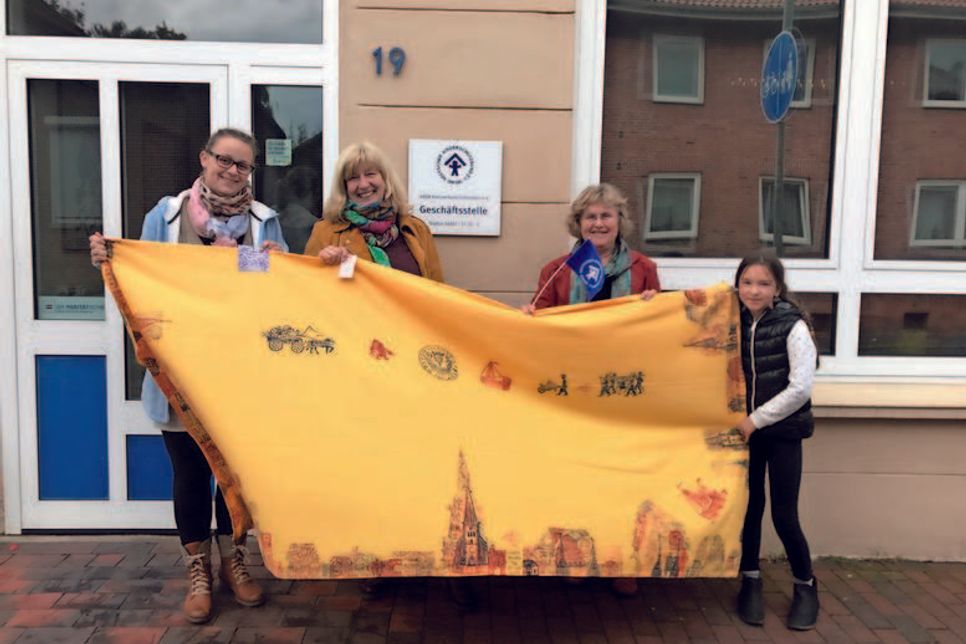 Neustadt. Am Welt-Kinder-Tag, dem 23. September 2017, erfolgte im Rahmen der „Spiel mit Aktion“ ein ganz besonderer Einblick in die Arbeit der Textilhanddruckerei der J. H. Koch Werkstätten. In den Räumlichkeiten Vor dem Kremper Tor 11 fanden sich über den Tag verteilt über 100 interessierte Kinder ein, um sich auf der aufgespannten Decke mit einem Druck eines Neustadt-Motives oder auch einer Blumenranke zu beteiligen.