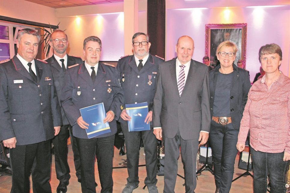 Des Weiteren nahm Kreisbrandmeister Torsten Plath vom Kreisfeuerwehrverband zwei besondere Ehrungen vor: Das Schleswig-Holsteinische Feuerwehr Ehrenkreuz in Bronze erhielt Karl-Hermann Schuldt. Matthias Henning wurde das Schleswig-Holsteinische Feuerwehr Ehrenkreuz in Gold verliehen. Gemeindewehrführer Volker Langbehn mahnte in diesem Zusammenhang, sich ehrenamtlich und aktiv für die Feuerwehr einzutreten. „Wenn sich jeder nur fünf Prozent einbringen würde, habe man schnell 100 Prozent Engagement. Die Alternative Pflichtfeuerwehr würde hingegen wie eine Fußfessel sein. (he)