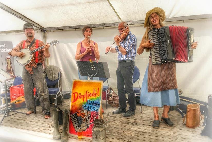 Holsteener Platt und Folk mit Dörpfiedel Rettin. Am Samstag, dem 7. September spielt die Ostholsteiner Band Dörpfiedel ab 19.30 Uhr im Eiscafé Adventuregolf in Rettin aus ihrem abwechslungsreichen und schwungvollen Programm Lieder auf Holsteiner Platt und internationale Folklore bei freiem Eintritt. (red)