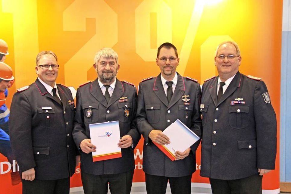 Michael Nickel (JF Pansdorf) Leistungsspange in Bronze, Sascha Gosch (FF Lensahn) Ehrenmitgliedschaft im Kreisjugendfeuerwehrausschuss.