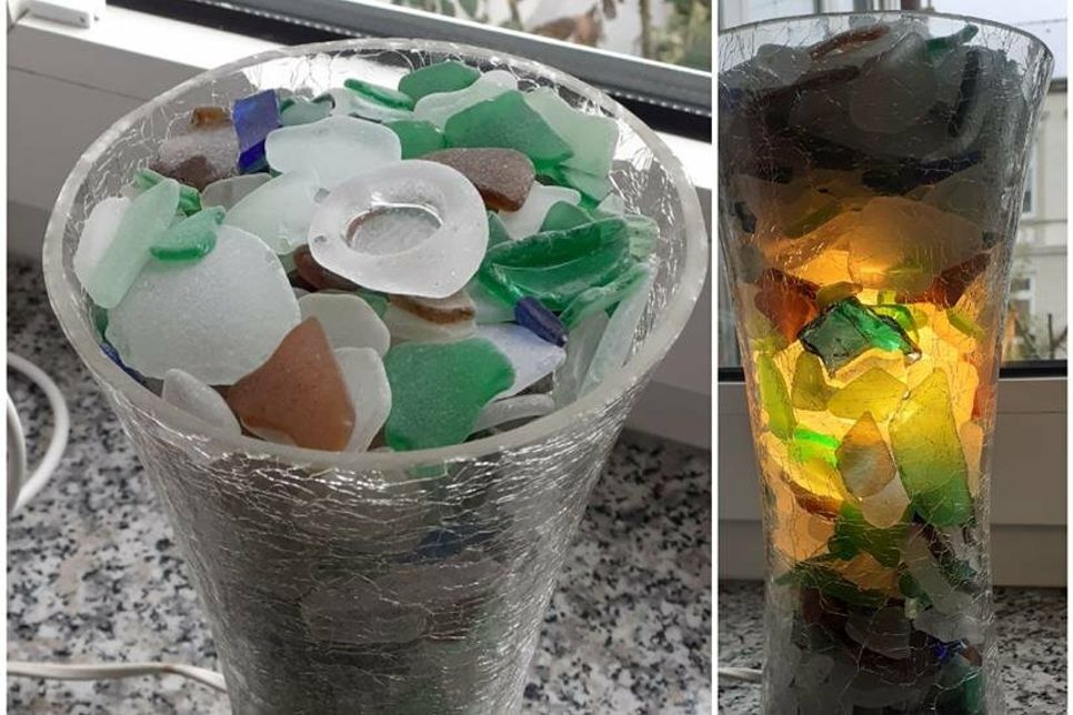 wir laufen auch viel mit unserem Hund am Strand. Es ist wirklich erschreckend, was da alles liegt. Oft finden wir auch Angelhaken oder Angelschnüre etc. Aus dem Glas haben wir etwas schönes gebastelt. Vielleicht ja eine Anregung zum nachmachen.