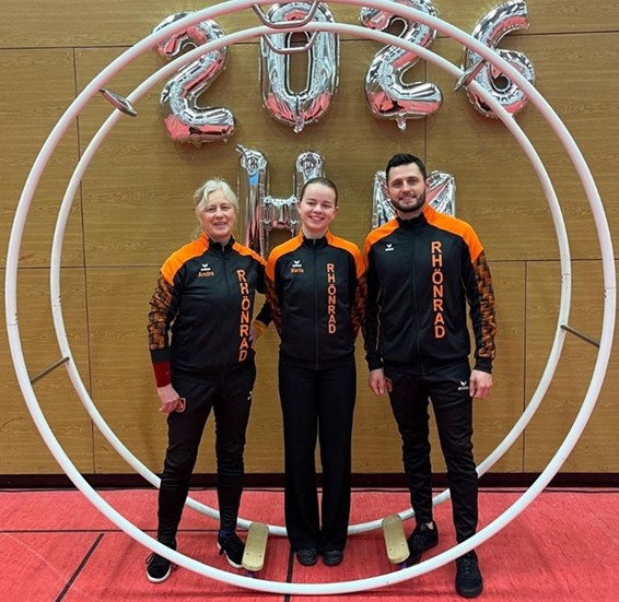 Am Sonntag nahmen gleich alle drei Starter den 2. Platz in ihrer Altersklasse mit nach Neustadt. Bohdan Samoiliuk präsentierte sich zum allerersten Mal in der Sportart Rhönrad, die er erst seit wenigen Monaten trainiert. Durch exzellente Konzentration und durch seine mitgebrachte Spannung waren kaum Abzüge in der Geradekür möglich. Damit kam er auf einen guten 2. Platz in der AK 25+. Marla Axt (AK 17/18) und Andra Franz (AK 40+) brachten beide ihre Geradeküren ohne nennenswerte Fehler über die Bühne. Marla zeigte zudem einen schön gesprungenen Vorwärtssalto.