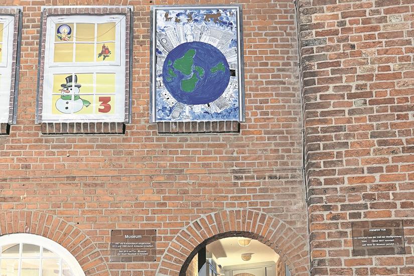 Neustadt in Holstein. In der winterlich erleuchteten Innenstadt hat das Kremper Tor auch in diesem Jahr wieder viele Menschen zum Auftakt des Riesen-Adventskalenders angelockt. Bereits zum 17. Mal werden in den Fenstern des historischen Stadttors von Montag bis Freitag täglich neue Kunstwerke enthüllt. Los ging es am Montag mit der feierlichen Präsentation der ersten beiden Bilder, gestaltet von den Klassen 4d und 3f der Grundschule Neustädter Bucht.