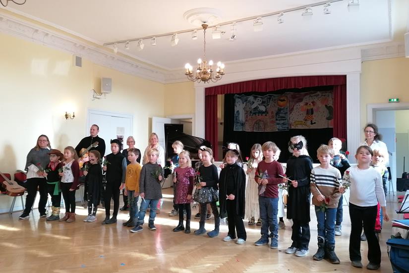 Eutin. Am Samstag, dem 11. Oktober fand in der Carl-Maria-von-Weber-Schule Eutin die Abschlussveranstaltung des Instrumentenkarussells der Kreismusikschule Ostholstein statt. Im Karussell waren die Instrumente Geige, Gitarre, Klavier, Akkordeon und Blockflöte vertreten. Beim diesjährigen Kurs nahmen 25 Schülerinnen und Schüler teil. Das Programm war sehr abwechslungsreich und schön gestaltet. Am Anfang wurden kurze Stücke auf den verschiedenen Instrumenten vorgespielt. Danach folgte ein Tanz von Johann Pachelbel mit allen beteiligten Schülern. Weiter ging es mit einer Klanggeschichte mit dem Thema „Der Messerwerfer im Zirkus“ sowie im Anschluss eine gruselige Klanggeschichte „Im Geisterschloss“. Dazu waren die Kinder als Geister verkleidet. Abschließend wurde nochmal getanzt und gesungen. Hier verabschiedeten sich die Kinder mit dem Lied „Wir sagen uns Auf Wiederseh´n“.