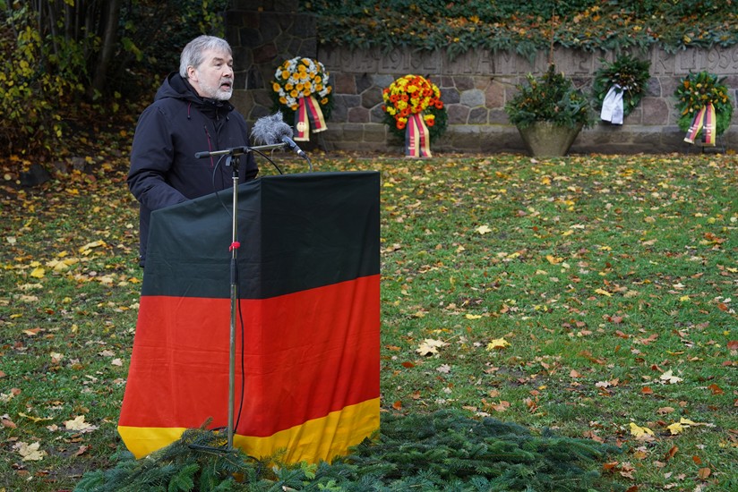 Er mahnte, dass man am Volkstrauertag nicht bloß zurückblicke. Vielmehr sei es ein Tag, „an dem wir uns fragen müssen, was die Erinnerung an entsetzliche Kriege für uns heute bedeutet. Gerade in einer Zeit, in der wieder Menschen unter Kriegen leiden“, so Hopp. Er erinnerte daran, dass derzeit in Europa, in der Ukraine, im Nahen Osten, im Israel-Gaza-Konflikt oder in Afrika, etwa im Sudan, Kriege stattfinden. Auch in Neustadt finden sich Spuren der Geschichte des Krieges. Viele Familien hätten Angehörige verloren, so Hopp weiter. Dies wirke bis in die Gegenwart hinein, durch Tod, Verletzung oder Traumata. „Vergangenheit, die nicht wirklich vergeht“, nannte er dieses fortdauernde Gedenken.