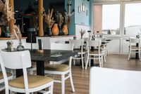 Die Atmosphäre im „Land & Meer“ ist modern und gemütlich zugleich, mit viel Platz drinnen wie draußen. Familien schätzen besonders den Spielplatz nebenan, der Kindern Raum zum Toben gibt, während die Erwachsenen in Ruhe genießen können.