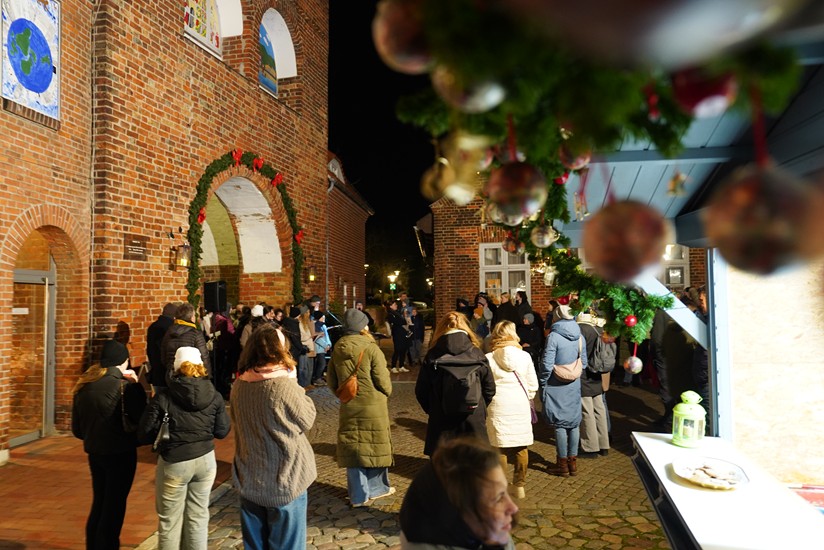 Diese enthüllte ein buntes Weihnachtsbild im Comicstil mit dem Titel „Das Weihnachtschaos“, auf dem eine Schar von Wichteln den Weihnachtsbaum kapert. Mit Geschenken, Schnee und Lichterketten sorgen sie bereits in der Nacht zum 12. Dezember, das lässt sich am abgebildeten Adventskalender ablesen, für die passende Tannenbaumdekoration und hinterlassen dabei gleichzeitig ein kleines Chaos. Damit zeigte die Jacob-Lienau-Schule auf künstlerische Weise, dass die Vorweihnachtszeit nicht immer nur harmonisch, sondern mitunter auch ganz schön chaotisch sein kann.