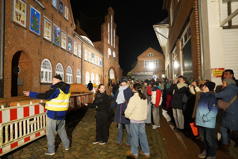 Neustadt in Holstein. Zwölfmal zählten die Beteiligten des Riesen-Adventskalenders am Kremper Tor bereits den Countdown herunter und enthüllten dabei jedes Mal ein neues, kreatives, weihnachtliches Bild im XXL-Format. Am vergangenen Donnerstag war die Jacob-Lienau-Schule an der Reihe. Gestaltet wurde der Abend von den Schülerinnen und Schülern selbst mit musikalischen Beiträgen und Gedichten. So steuerten sie stimmungsvoll auf den Höhepunkt des Abends zu: die Türchenöffnung.