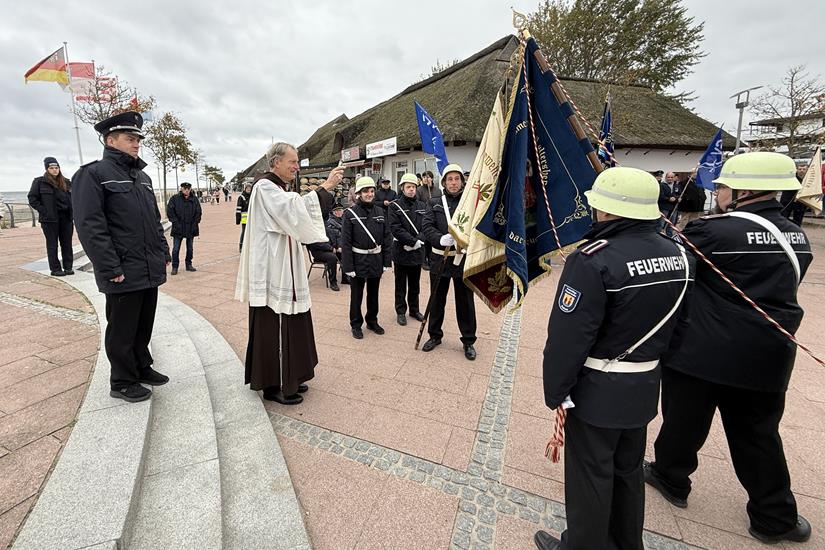 Den geistlichen Rahmen setzte Ostholsteins Tourismusseelsorger Pater Ralf Winterberg. Er segnete die Fahne und erinnerte daran, dass sie über die Wehr hinaus für das ganze Dorf stehe: „Wenn sich die alte und die neue Fahne begegnen, ist das mehr als ein feierlicher Akt. Es ist ein Moment der Verbundenheit über Generationen hinweg.“