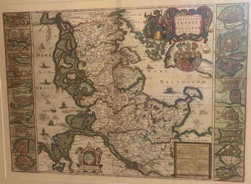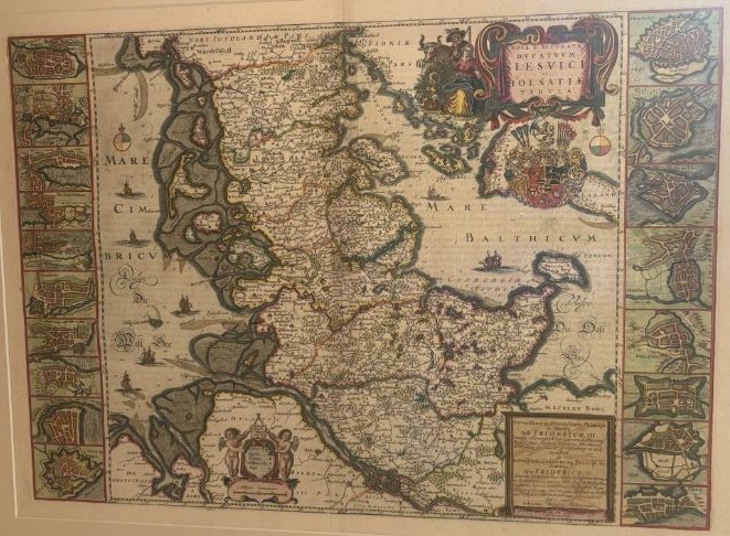 Seltener historischer Kupferstich (1652) - Schleswig-Holstein Karte von Johann Meier. Zum Verkauf steht ein außergewöhnlicher, originalgetreu erhaltener Kupferstich aus dem Jahr 1652 mit der Hauptkarte von Schleswig-Holstein - gefertigt vom bekannten Stecher Johann Meier aus Husum. Diese beeindruckende historische Karte zeigt Schleswig-Holstein in faszinierender Detailgenauigkeit und ist ein echtes Highlight für Sammler, Geschichtsinteressierte und Liebhaber klassischer Kartografie. Preis 1300€ Tel. 04562/6000