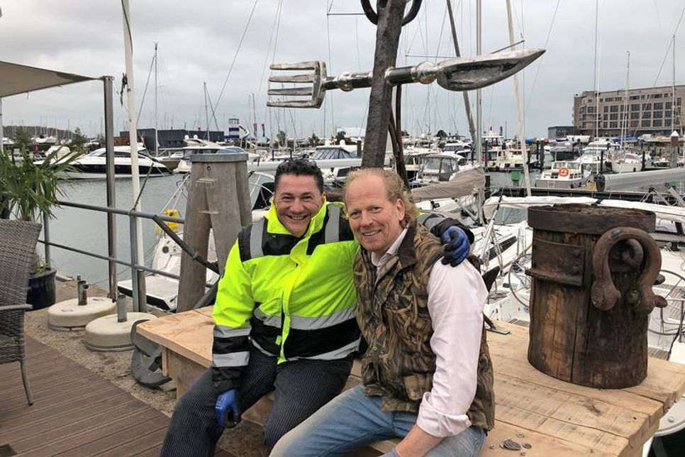 Ein Wahrzeichen in der ancora Marina - Arwed Hilla fertigte aus historischem Anker das „Pier 19“-Logo