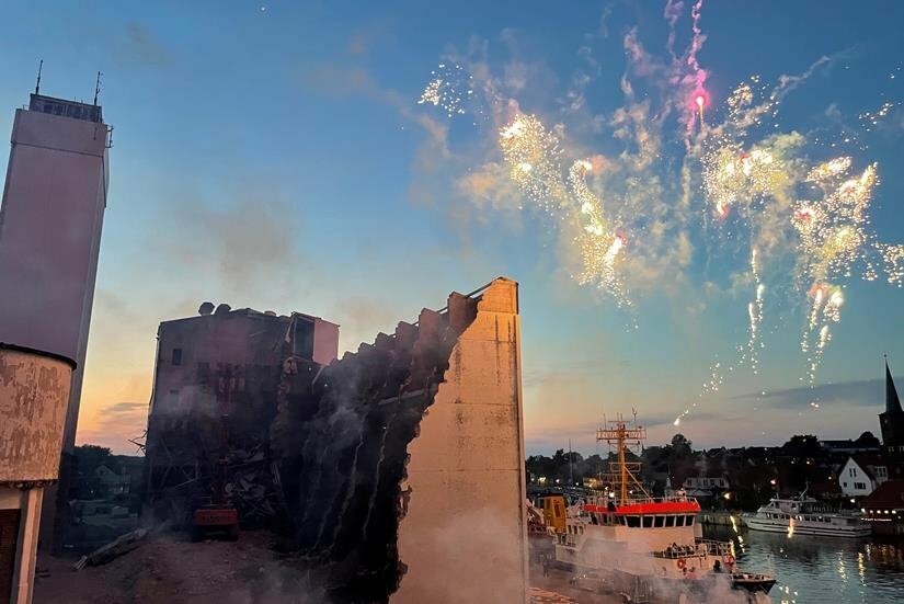Neustadt in Holstein. Ein echter Kracher: Burkhardt Geipel hatte in seinem Hafenraum im Haus der Manufakturen einen Logenplatz, als am vergangenen Wochenende ein Feuerwerk vor der Hafenkulisse gezündet wurde. Das Feuerwerk war Programmpunkt einer Hochzeit und tauchte die Abbruchhäuser auf der große Baustelle an der Hafenwestseite in ein besonders faszinierendes und etwas apokalyptisches Farb- und Lichterspiel. (he)