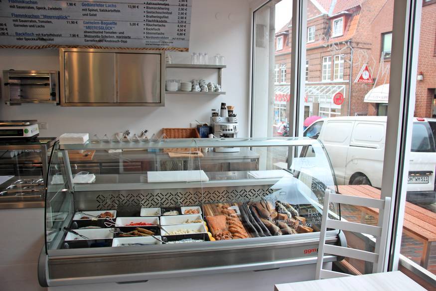 Inhaber Guynay Redzheb hat sich mit seiner Frau Daiga einen Traum erfüllt und den Schritt in die Selbständigkeit gewagt. In den geschmackvoll und hell eingerichteten Räumlichkeiten in der Brückstraße 13 kommen Fischliebhaber voll auf ihre Kosten. Neben Fischbrötchen in allen Variationen hält der gastronomieerfahrene Wahlneustädter auch eine kleine Karte mit kalten und warmen Speisen für seine Gäste bereit. Neben Bouillabaisse, gebeiztem Lachs oder bunten Salaten garniert mit Garnelen oder Thunfisch warten auch Hauptgerichte wie beispielweise gedünsteter Lachs mit Spinat, Salzkartoffeln und Salat auf hungrige Gäste. Flammkuchen, Backfisch, diverse Dips und Baguette-Kreationen finden sich ebenfalls auf der Karte des „Meeresglück“.