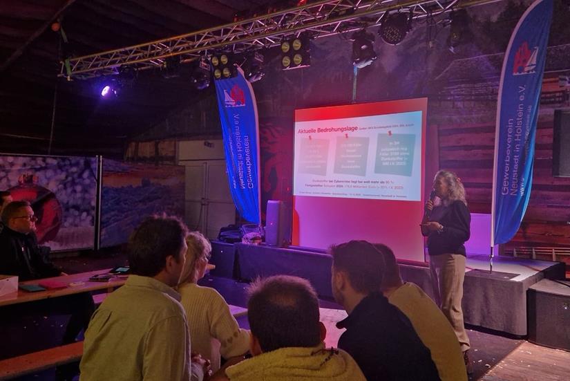 Neustadt in Holstein. Zahlreiche Teilnehmende folgten der Einladung des Gewerbevereins zum 5. Netzwerkforum „Unternehmen im Visier der Hacker: Tricks und Täuschungen in der Cyberwelt“, das im Zelt des Wintertreffs auf dem Neustädter Marktplatz stattfand. Im Mittelpunkt des Abends stand die wachsende Bedrohung durch Cyberangriffe, die längst nicht mehr nur große Unternehmen, sondern zunehmend auch kleine und mittelständische Betriebe betreffen. Vivian Simon, Expertin für Cybersicherheit, gab einen fundierten Überblick über die aktuelle Bedrohungslage in Deutschland. Anschaulich erläuterte sie typische Angriffsmethoden wie Ransomware, Social Engineering und modernes Phishing. Dabei griff sie auch die aktuellen Warnungen und Einschätzungen des Bundesamts für Sicherheit in der Informationstechnik (BSI) auf. Ein besonderer Fokus lag auf den psychologischen Tricks der Täter: CEO-Fraud, Love-Scamming, E-Mail-Bombing oder sogenannte Carambolage-Methoden wurden anhand konkreter Beispiele erklärt. Gleichzeitig erhielten die Teilnehmenden praxisnahe Tipps, wie sich Unternehmen mit vergleichsweise einfachen Maßnahmen besser schützen und Risiken deutlich reduzieren können. Für großes Interesse und einige Überraschungen sorgte der interaktive Abschluss des Abends: In einem Quiz mussten die Teilnehmenden beurteilen, ob gezeigte Bilder real oder mithilfe künstlicher Intelligenz generiert waren. Die Ergebnisse zeigten eindrucksvoll, wie täuschend echt KI-Inhalte inzwischen wirken - und wie schwer es selbst für aufmerksame Betrachter ist, Fälschungen zuverlässig zu erkennen. Beim anschließenden „Netzwerken“ nutzten die Gäste die Gelegenheit, eigene Erfahrungen zu teilen und offene Fragen zu diskutieren. „Gerade für kleinere Betriebe ist der persönliche Austausch enorm wichtig“, betont Roman Seidler,