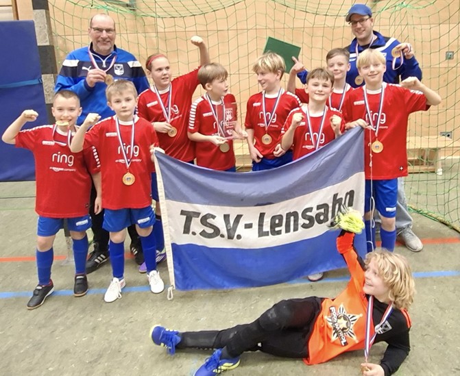 Lensahn. Bei der erstmals ausgetragenen Hallenkreismeisterschaft im Futsal sicherte sich die E-Jugend des TSV Lensahn den Titel. In der Vorrunde setzte sich die Mannschaft gegen Gegner aus Ostholstein wie Sereetz, Ratekau und Pansdorf durch und belegte den ersten Platz. Da auch der MTV Ahrensbök seine Gruppe ohne Punktverlust gewann, kam es zu einem spannenden Finale. Nach einem torlosen Spiel entschied das anschließende Sechs-Meter-Schießen, das der TSV Lensahn knapp mit 3:2 für sich entschied.