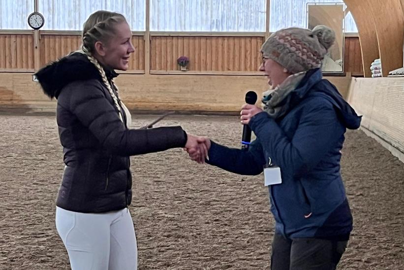 Ein besonderes Highlight des Tages war die Verleihung eines Ehrenpreises für besonders guten Umgang mit dem Partner Pferd. Der Verein legte damit bewusst ein Zeichen für Tierwohl, Fairness und partnerschaftliches Reiten - Werte, die dem Neustädter Reitverein wichtig sind. Die Richter beobachteten die sportlichen Leistungen, und eine Jury aus drei Ehrenamtlichen beobachtete respektvollen Umgang, feine Hilfengebung und pferdefreundliches Verhalten im gesamten Turnierverlauf. Die Auszeichnung wurde von den Teilnehmenden und Zuschauern gefeiert. Überrascht über die Auszeichnung war Lara Zabel (RuFV Lensahn), die den Preis unter den Dressurreiterinnen entgegengenommen hat, sie hatte ihr Pferd bereits nach Hause gebracht und kam dann noch einmal ohne Pferd zurück, um den Preis entgegen zu nehmen. Unter den Springreitern hat den Preis Mia Jolie Schnack (RuFVNeustadt) verliehen bekommen.